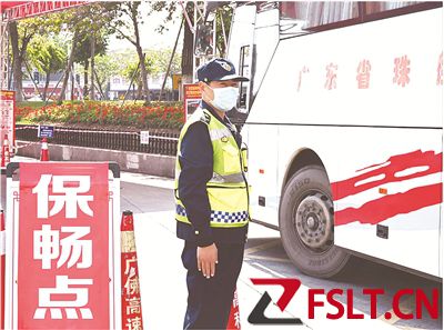 廣佛高速路政員在大瀝站出口保暢點值守,及時疏導車輛。/通訊員陳琪攝