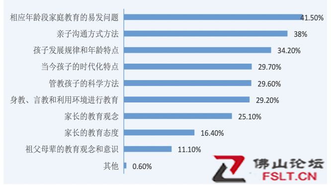 根據(jù)《報(bào)告》,佛山家長(zhǎng)最希望獲得的家庭教育指導(dǎo)服務(wù)內(nèi)容排前三位的是“相應(yīng)年齡段家庭教育的易發(fā)問題”、“親子溝通方式方法”和“孩子發(fā)展規(guī)律的年齡特點(diǎn)”。