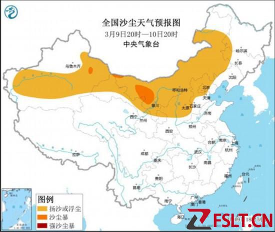中央氣象臺今天夜間繼續(xù)發(fā)布了沙塵暴藍(lán)色預(yù)警,預(yù)計3月9日20時至10日20時,新疆東部和南部、甘肅西部、內(nèi)蒙古大部、寧夏、陜西北部、山西中北部、河北中北部、北京等地的部分地區(qū)有揚沙或浮塵天氣,其中,新疆東部、內(nèi)蒙古西部局地有沙塵暴。