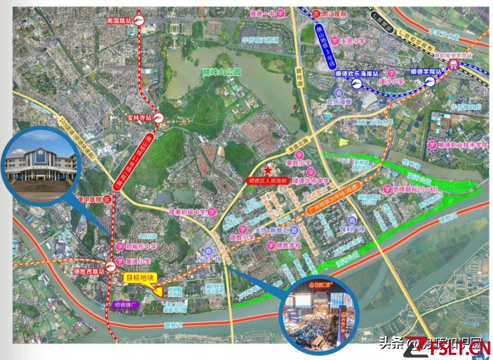 地塊位于南城水軸片區(qū)的中心地段,與順德行政服務(wù)中心相鄰,處于城市東拓發(fā)展的主方向軸上,是大良城區(qū)的“新城芯”所在,同時(shí)也是順德近年重點(diǎn)打造的居住高地。