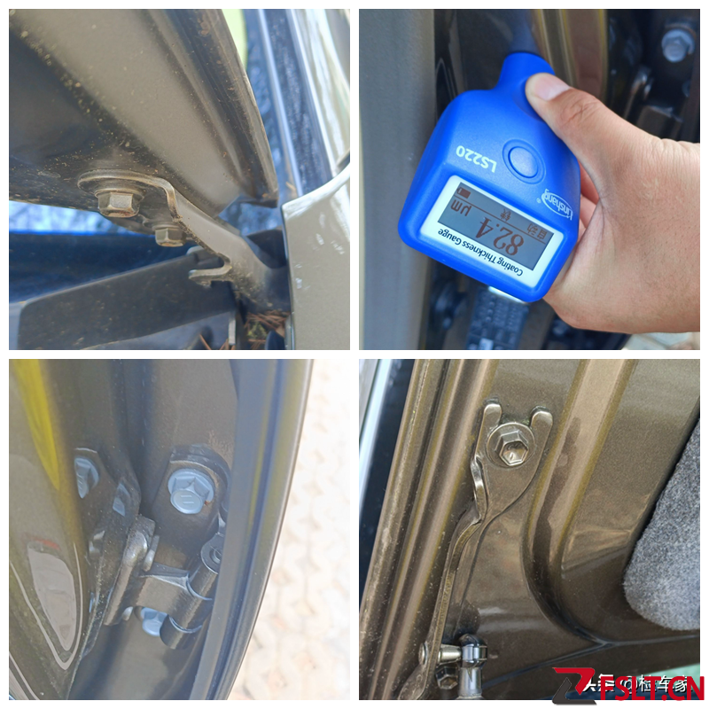如果說車衣里面的漆面看不到也摸不著,單憑漆膜儀不具備說服力,那么沒有貼車衣的門框里口部位總可以了吧,這里的漆面厚度也是正常的,而且前后蓋和四個(gè)車門的固定螺絲都還是原裝的,沒有任何擰動(dòng)拆卸和后噴漆痕跡!