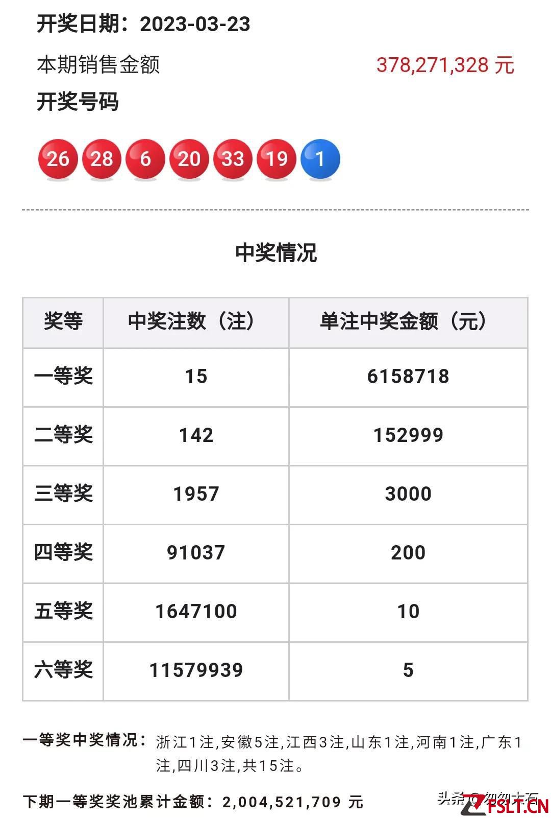 雙色球23032期開獎:一等獎15注,廣東已連續(xù)六期再中大獎