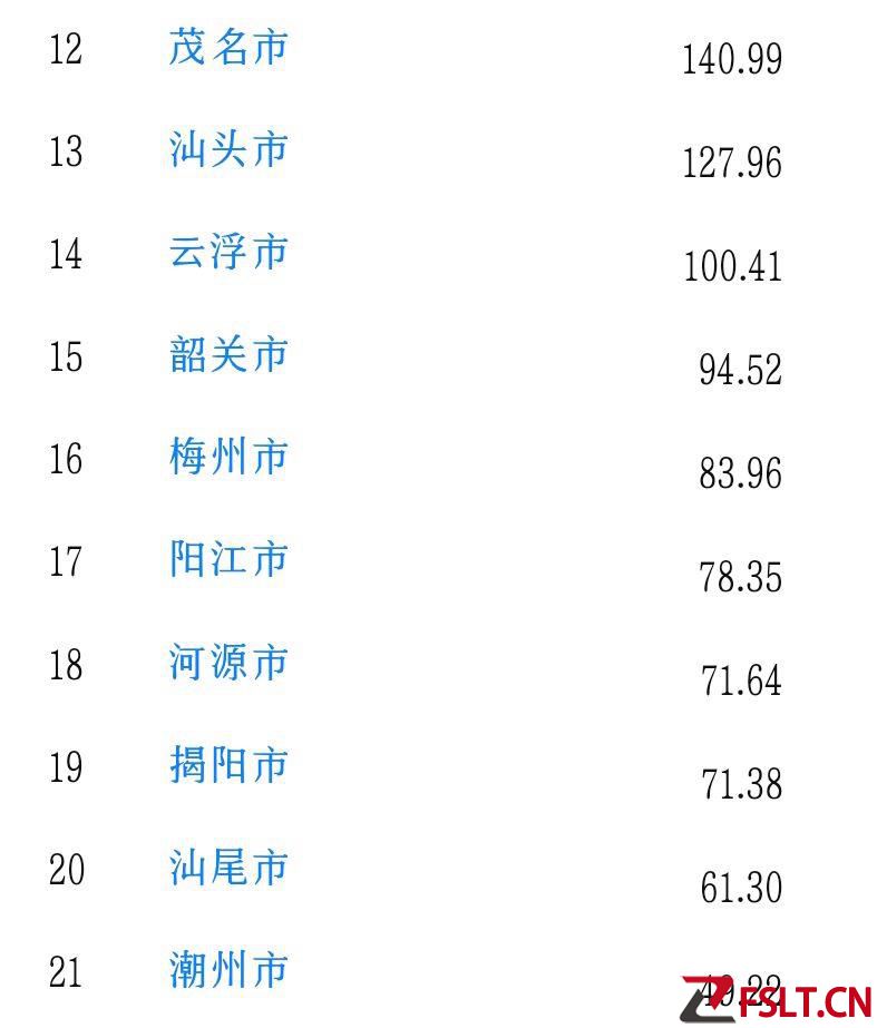 廣東省21市財政收入:中山遠超湛江,云浮第14,汕尾第20