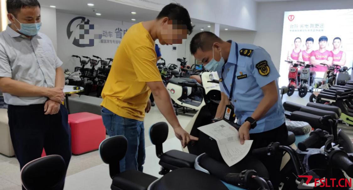 9月1日,檢查組到佛平二路一家電動自行車銷售點(diǎn)進(jìn)行檢查。/佛山日報(bào)記者周龍鳳攝