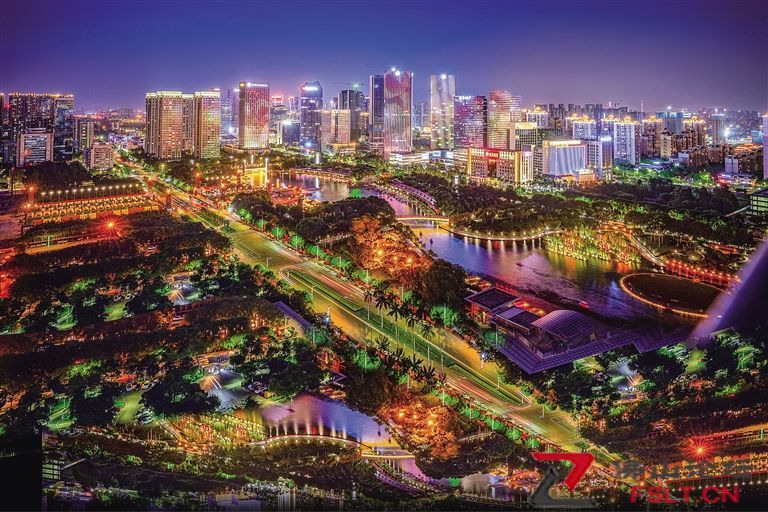 夜幕下的千燈湖片區(qū),燈火璀璨。/桂城宣辦供圖