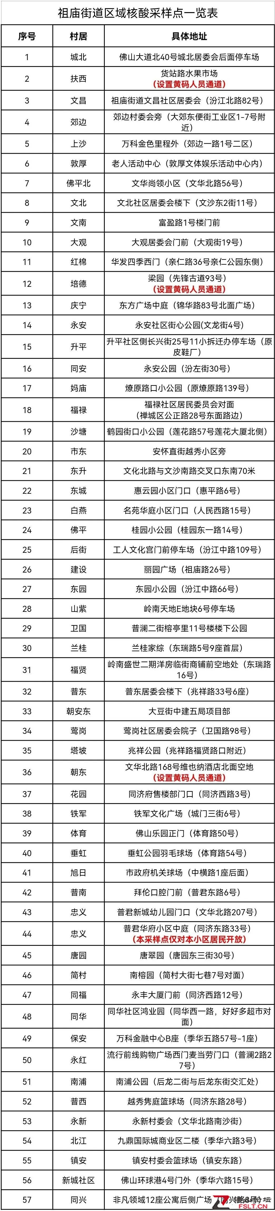 石灣鎮(zhèn)街道核酸采樣點(diǎn)分布表如下