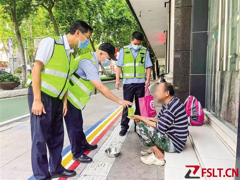 上周末,佛山市救助站工作人員于祖廟路一帶開展日常巡護(hù)檢查工作。/市民政局供圖