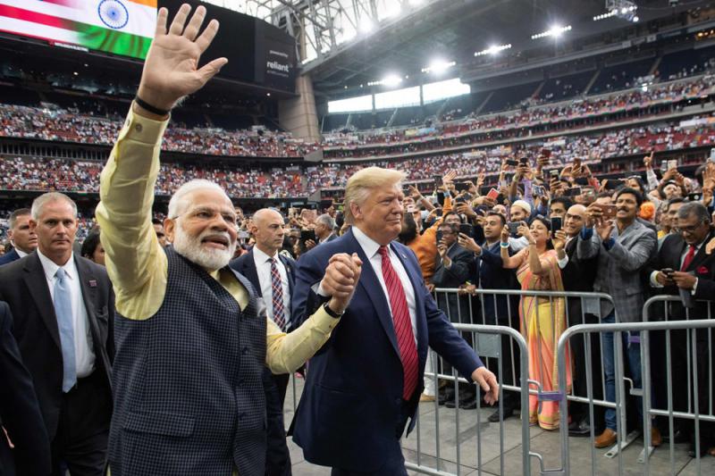 綜合《紐約時報》、路透社報道:美國總統(tǒng)特朗普22日陪同印度總理莫迪,參加了印度裔美國人協(xié)會在得州休斯敦舉辦的“莫迪你好”(Howdy Modi)活動。其間兩人大秀友誼,顯露出美印貿(mào)易戰(zhàn)有望和解。另外,特朗普希望藉機將印度裔選民從民主黨陣營拉攏過來,莫迪則希望通過外交成就,來抵擋國內(nèi)外對他在克什米爾問題上強硬手段的批評。