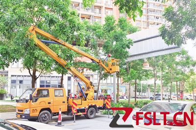 8月23日下午,綠化管養(yǎng)人員對禪城區(qū)星寓路兩旁綠化樹進(jìn)行修剪。