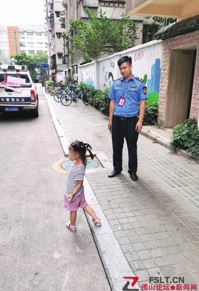 ■祖廟城管執(zhí)法人員留在現(xiàn)場安慰照看小女孩。