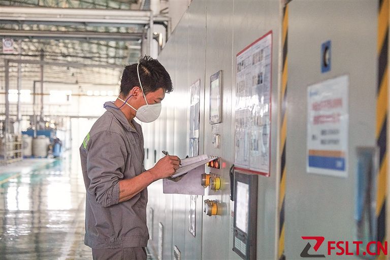 佛山德方納米科技有限公司車間內(nèi),工人在生產(chǎn)線上巡檢。/佛山日報(bào)記者呂潤致攝