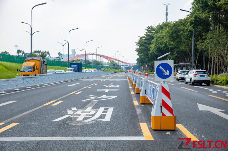 佛山市第三中學門前的智慧潮汐車道。/佛山日報記者符詩賀攝