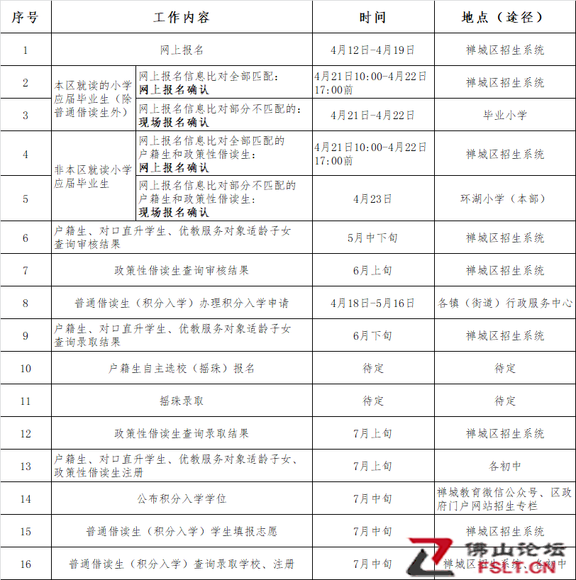 禪城區(qū)2022年公辦初中招生工作時(shí)間表。/部門(mén)供圖