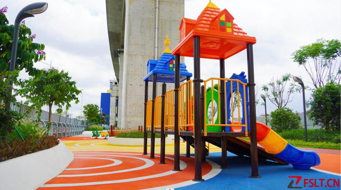 曾經(jīng)荒草叢生的廣佛環(huán)線橋下空間被改造升級為色彩繽紛、功能多樣的休閑公園。/市交通運輸局供圖