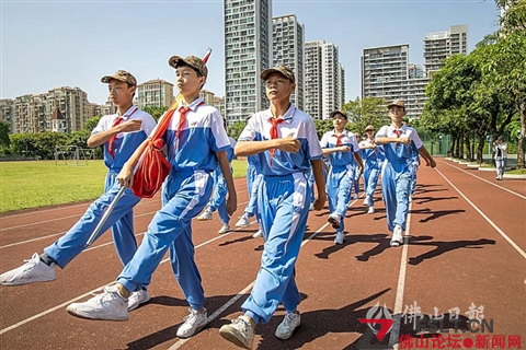華英學(xué)校初一新生軍訓(xùn)總結(jié)入場。/資料圖片