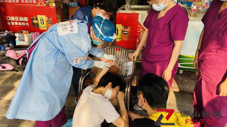 當(dāng)天,佛山市復(fù)星禪誠醫(yī)院副護(hù)長張海玲帶對11名醫(yī)護(hù)人員,到石梁村文化中心核酸檢測點(diǎn)為群眾服務(wù)。在檢測點(diǎn)工作的過程中,現(xiàn)場工作人員發(fā)現(xiàn)有人暈倒迅速向醫(yī)務(wù)人員求助。