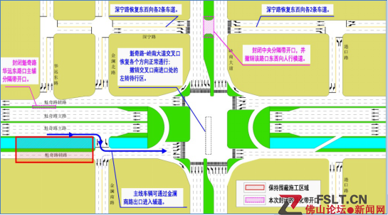 (2)魁奇路西往東需要駛往嶺南大道、港口路和天虹廣場(chǎng)、灣華村片區(qū)的車(chē)輛需要提前在金瀾南路路口進(jìn)入魁奇路河涌南側(cè)輔道后,在魁奇路-嶺南大道交叉口進(jìn)行轉(zhuǎn)向。