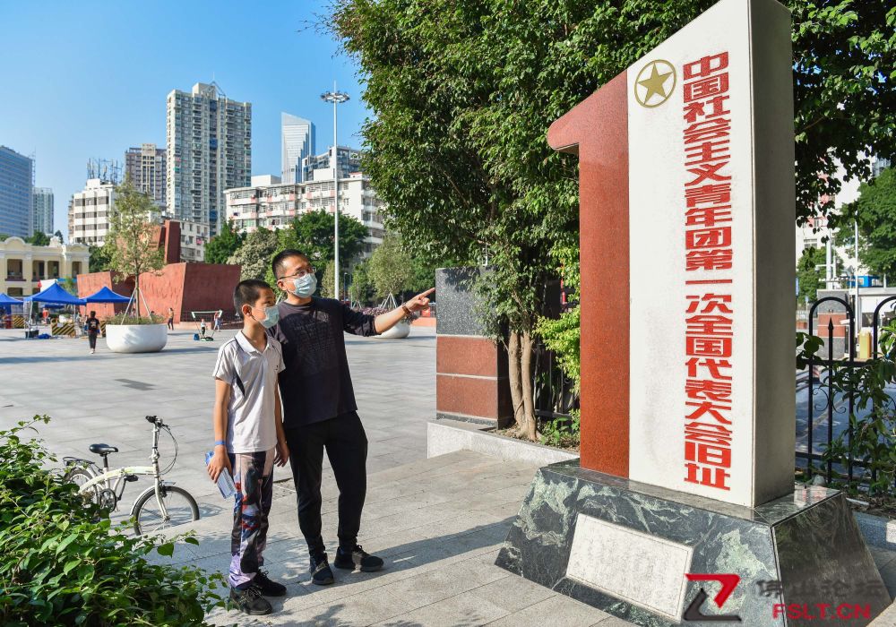 5月3日,家長帶著孩子來到廣州團一大廣場上的中國社會主義青年團第一次全國代表大會舊址參觀。新華社記者 劉大偉 攝
