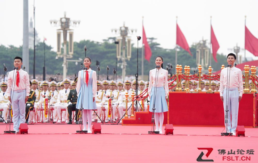 2021年7月1日上午,慶祝中國共產(chǎn)黨成立100周年大會在北京天安門廣場隆重舉行。這是共青團員和少先隊員代表集體致獻詞。新華社記者 殷博古 攝