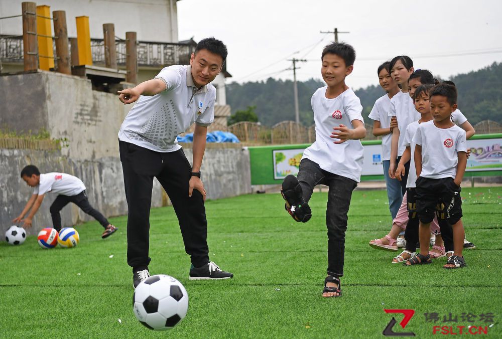 在江西省貴溪市金屯鎮(zhèn)金屯村渡坊村小組,志愿者和留守兒童一起進行體育活動(2020年5月27日攝)。新華社記者 萬象 攝