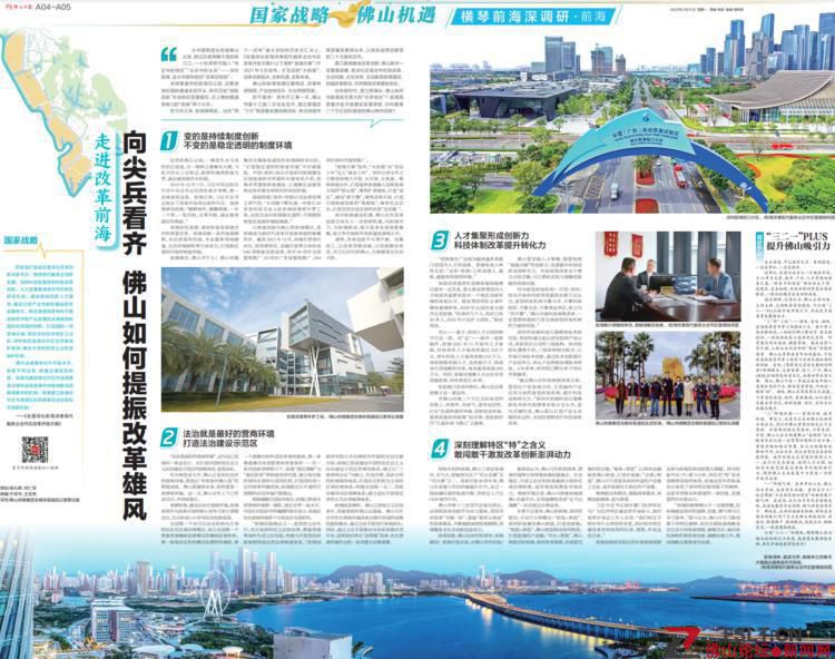 國(guó)家戰(zhàn)略,佛山機(jī)遇!佛山傳媒集團(tuán)啟動(dòng)了橫琴前海深調(diào)研,走訪(fǎng)兩個(gè)合作區(qū)的管理機(jī)構(gòu)、企業(yè)、園區(qū)、科研院所等,為佛山對(duì)接、支持、服務(wù)兩個(gè)合作區(qū)探路。2月21日至3月3日,佛山日?qǐng)?bào)相繼推出一系列全媒體深度觀(guān)察報(bào)道,結(jié)合橫琴、前海發(fā)展態(tài)勢(shì),立足佛山實(shí)際,從改革、產(chǎn)業(yè)、創(chuàng)新、開(kāi)放、文化五個(gè)角度全方位剖析雙方合作空間與現(xiàn)實(shí)路徑。
