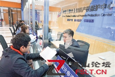 企業(yè)代表在佛山市知識(shí)產(chǎn)權(quán)保護(hù)中心辦理業(yè)務(wù)。/資料圖片
