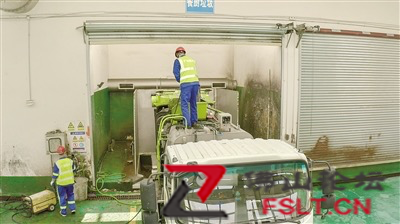 上午九時多,專車如常上門,對統(tǒng)一放置在該垃圾站內(nèi)的垃圾進行收運。據(jù)了解,西華里飲食文化城有12個餐飲商家,均配備垃圾收集管理專員,每晚收市后指導(dǎo)店員分好廚余垃圾,放到處理站內(nèi)。第二天由專車統(tǒng)一收走。