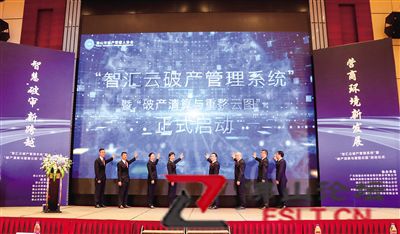 去年4月9日,佛山市“智匯云破產(chǎn)管理系統(tǒng)”暨“破產(chǎn)清算與重整云圖” 啟動(dòng)。/禪城法院供圖