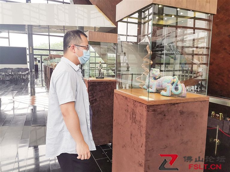 5月23日,市民在順德演藝中心二樓大廳參觀石灣陶塑展。