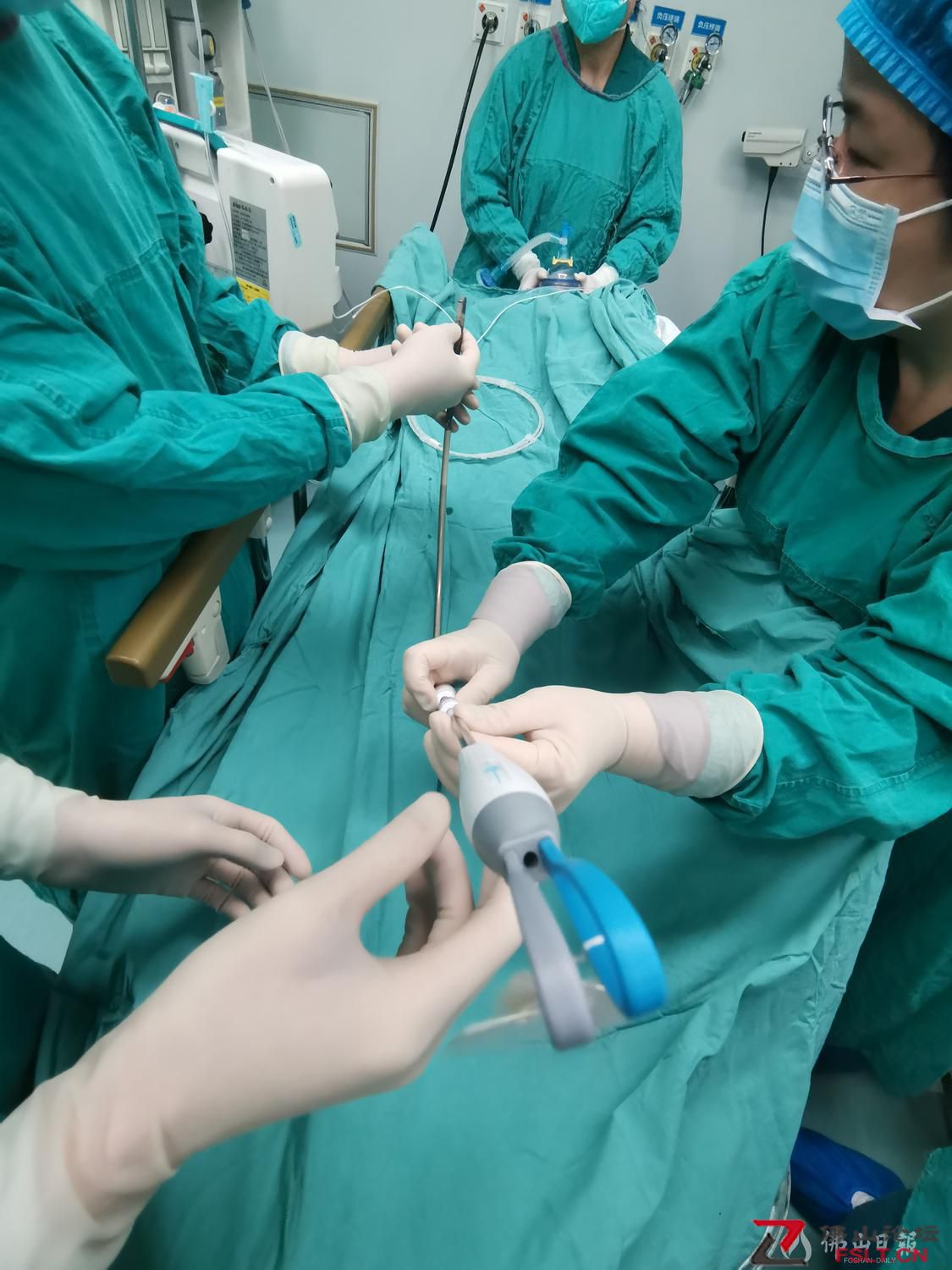 5月18日,在廣州呼吸健康研究院陳小波教授的指導下,張培芳主任醫(yī)師、魏曉群主治醫(yī)師及麻醉科張瑜主任醫(yī)師合作完成手術。整個術程用時不到1小時。
