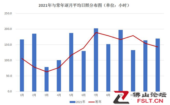 持久待機(jī)的陽光助長(zhǎng)了氣溫“節(jié)節(jié)高”。2021年,佛山市年日照時(shí)數(shù)1862.5小時(shí),較常年異常偏多270.7小時(shí)。