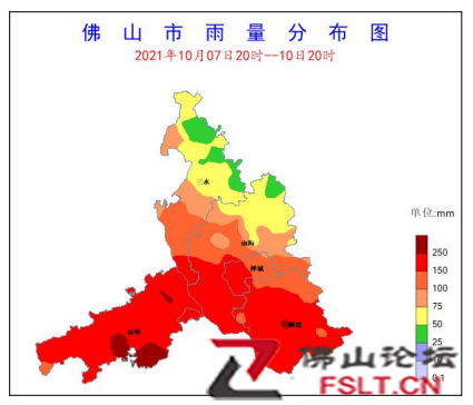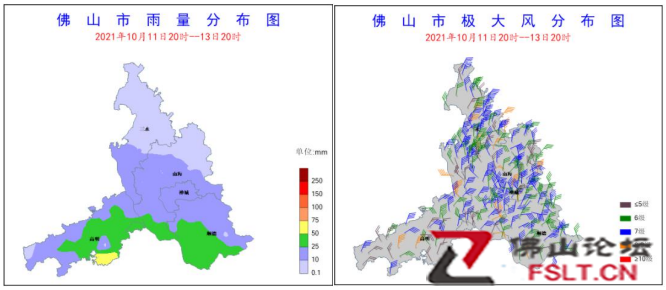 2021年,受臺(tái)風(fēng)“獅子山”和冷空氣共同影響,10月7日至10日,佛山市出現(xiàn)持續(xù)性強(qiáng)降雨,并伴有7~8級(jí)陣風(fēng),具有“持續(xù)時(shí)間長(zhǎng)、累積雨量大、雨勢(shì)相對(duì)平緩”的特點(diǎn):全市平均雨量133.5毫米,共有6個(gè)自動(dòng)氣象站的累積雨量超過250毫米;高明區(qū)楊和鎮(zhèn)錄得最大累積雨量373.5毫米,順德區(qū)樂從鎮(zhèn)錄得最大陣風(fēng)8級(jí)。