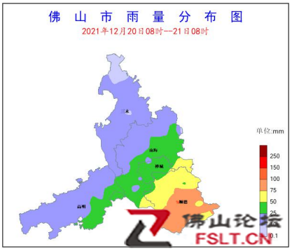 受臺(tái)風(fēng)“雷伊”外圍環(huán)流和冷空氣共同影響,12月20日到21日,佛山市中、南部出現(xiàn)暴雨、局部大暴雨,北部出現(xiàn)中雨,并伴有5~6級(jí)陣風(fēng)。
