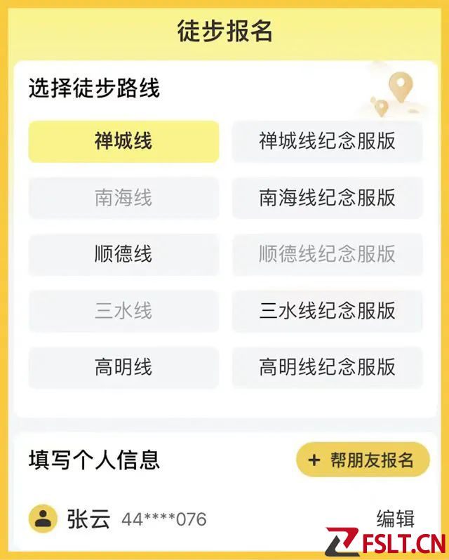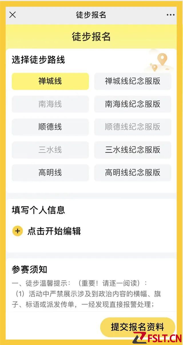 活動(dòng)當(dāng)天不接受現(xiàn)場報(bào)名,需要提前在佛山+客戶端報(bào)名。2023年佛山50公里徒步五條線路共有11萬個(gè)名額,其中禪城、順德、南海各3萬,高明、三水各1萬,名額報(bào)滿即止。