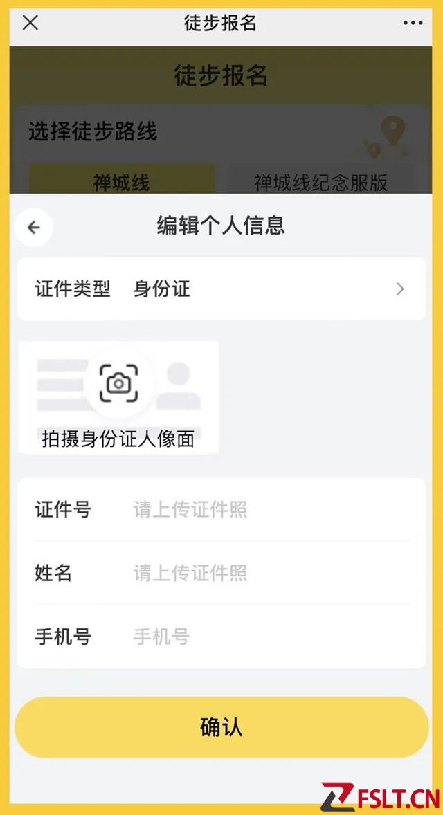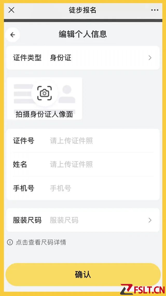 在“編輯個(gè)人信息”界面,選擇證件類型,上傳證件照片(注意:本次活動(dòng)僅接受8-70歲的市民報(bào)名)。在核對系統(tǒng)自動(dòng)識(shí)別的信息無誤后,點(diǎn)擊【確認(rèn)】按鈕。(如下圖所示:報(bào)名紀(jì)念服版的市民,需先在本頁面選擇服裝尺碼,再提交)