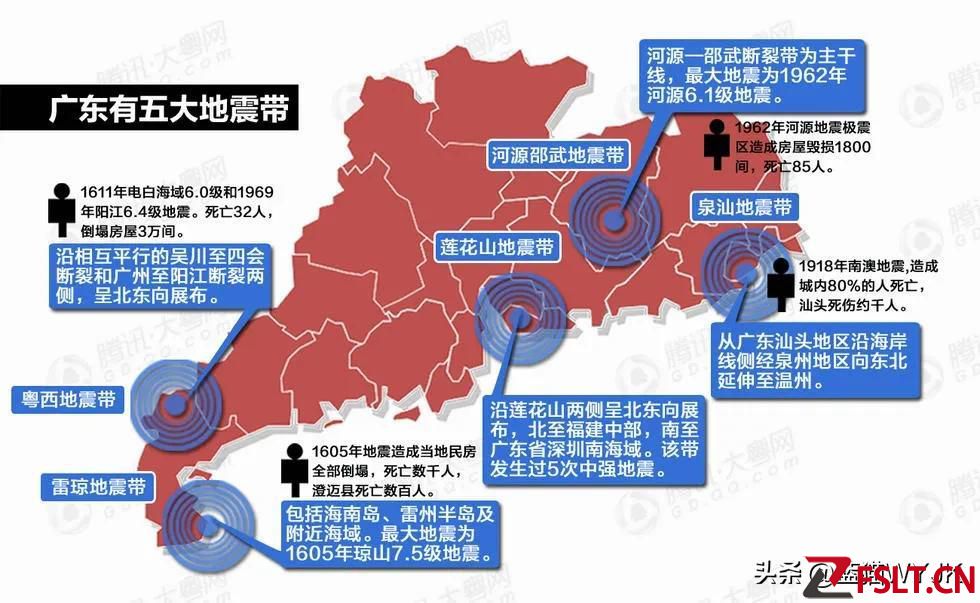 資料顯示 :廣東省內(nèi)有五個(gè)地震帶。它們分別是