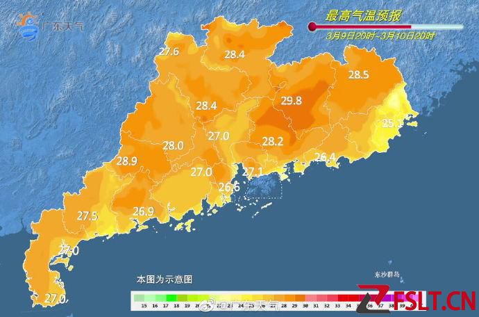 我們廣東雖然還沒(méi)出現(xiàn)30℃的高溫,但也是晴燥難耐。3月8日廣東省各市縣24小時(shí)最高溫度示意圖顯示,廣東大部最高氣溫超過(guò)25℃,廣州25.5℃、深圳25.7℃、茂名25.6℃、揭西和普寧高達(dá)27.5℃,離30℃也不遠(yuǎn)了。