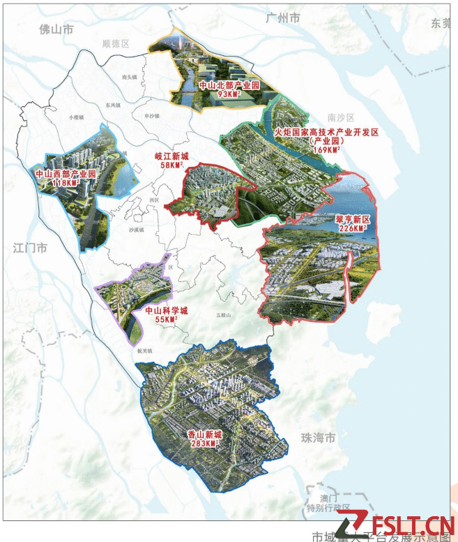 目前,中山區(qū)別于老城區(qū),正在如火如荼地開發(fā)東側(cè)火炬、翠亨新區(qū)一帶,一邊打造新興產(chǎn)業(yè),一邊大興土木,用房地產(chǎn)導(dǎo)入人口。