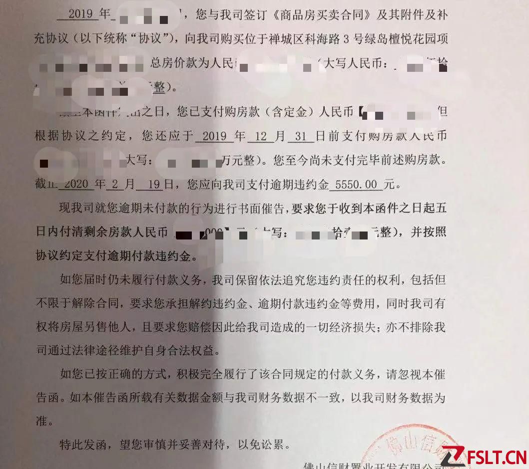 其中注明如果還未收到錢,將對業(yè)主保留依法追究違約責任的權利,甚至還可能解除合同、讓業(yè)主承擔違約金......