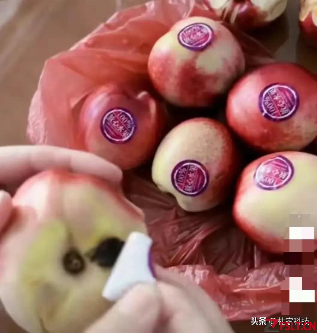 我前一陣買了幾個進(jìn)口的蘋果,顆顆飽滿,結(jié)果發(fā)現(xiàn)很多蘋果的商標(biāo)一揭開,里面都是傷疤,都是壞點(diǎn)。