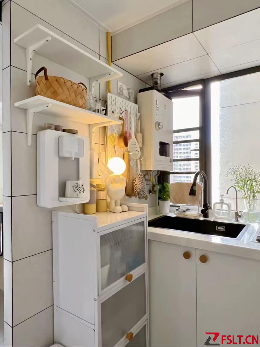 對(duì)于小空間來(lái)說(shuō),最好是一點(diǎn)點(diǎn)的面積都不要浪費(fèi)的。在洗菜盆的側(cè)墻面增加小隔板和小儲(chǔ)物柜,可以增加不少的收納空間。