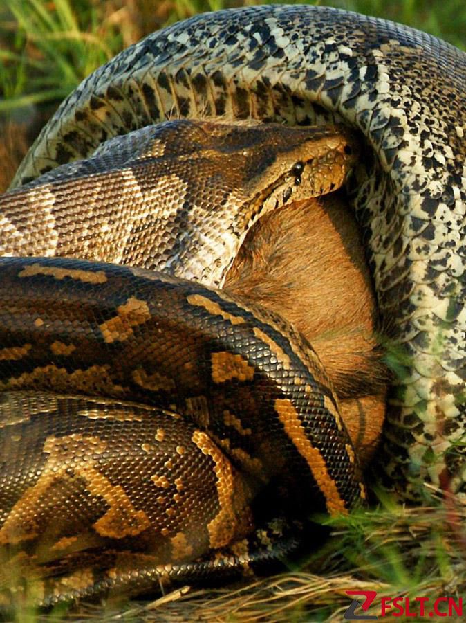 蟒蛇的能力很強(qiáng),擅長(zhǎng)攀爬和游泳,所以能夠很輕易地跑到我們家里來。它們一般喜歡在夜間出行捕食,胃口很大,通常捕食鼠類、鳥類、爬行類以及兩棲類,有時(shí)候也會(huì)吃羊、鹿、豬甚至是牛、鱷魚之類的大型動(dòng)物,可以吞食與體重相等重或超過體重的動(dòng)物。