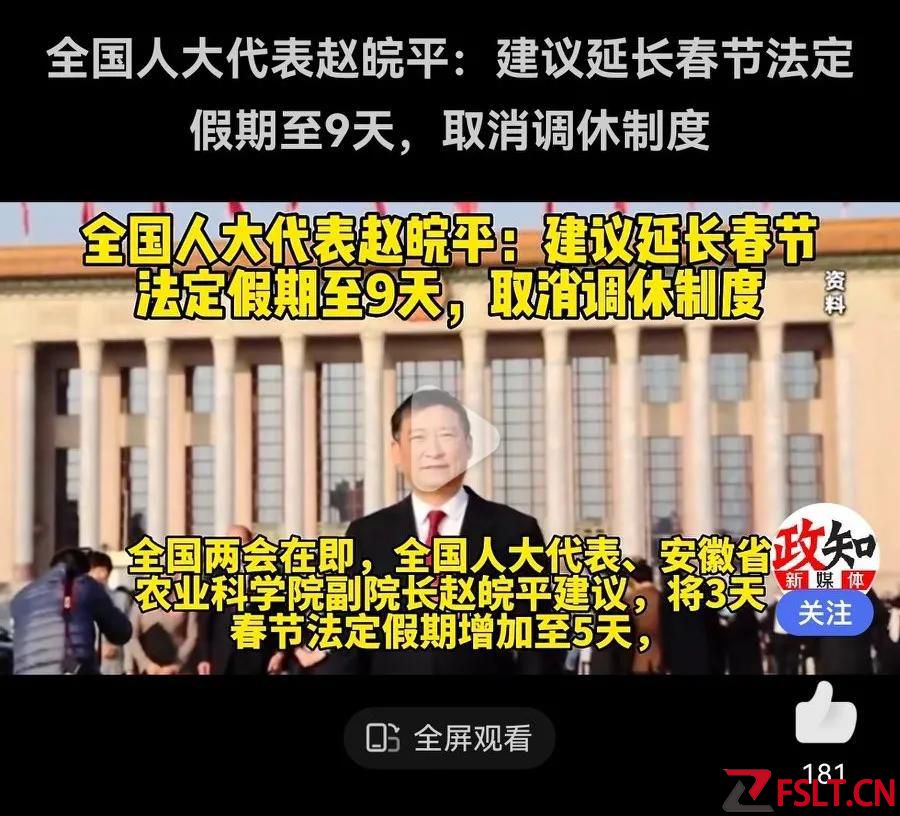 人大代表趙皖平:建議取消調(diào)休制,調(diào)休讓春節(jié)假期“變了味”。