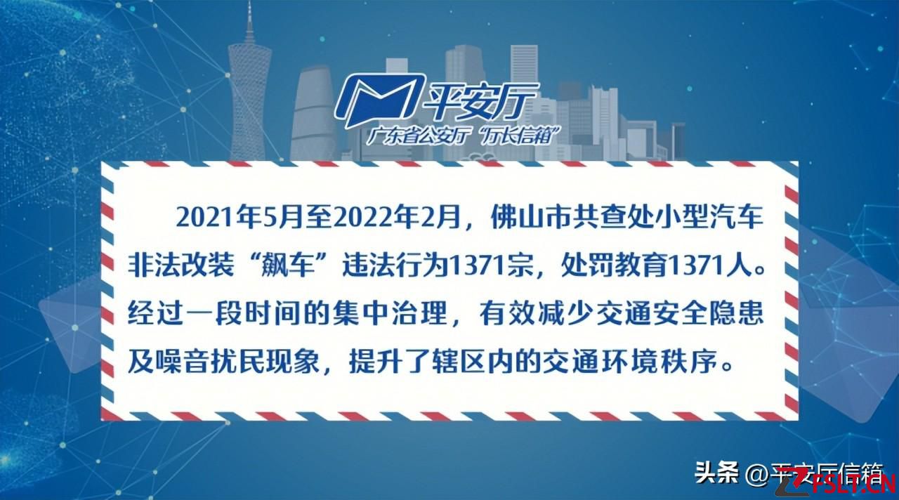 自2021年5月1日,廣東公安“平安廳”信箱開通以來,多名佛山群眾來信反映非法改裝車“炸街”噪音擾民問題。市民群眾對(duì)此深惡痛絕,希望公安機(jī)關(guān)加大力度查處。
