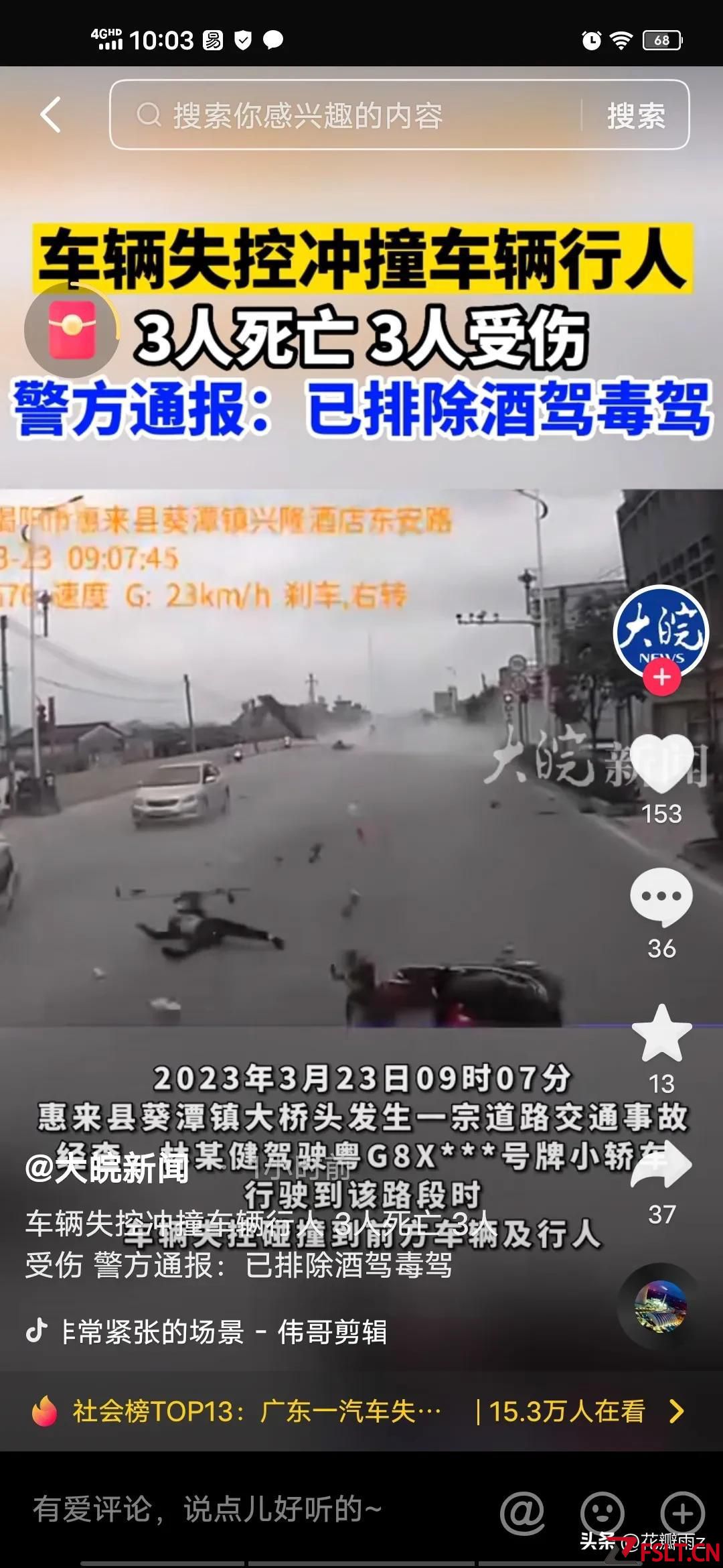 #城市觀察員#廣東一汽車失控撞人,致3人死亡3人受傷。
