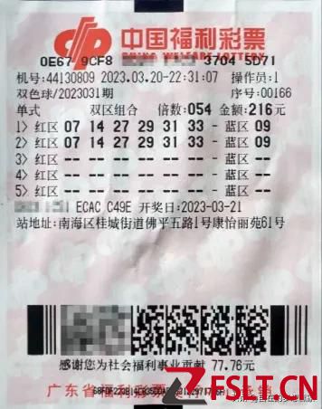 雙色球23031期全國共中出了3注一等獎(jiǎng),每注獎(jiǎng)金1000萬元;二等獎(jiǎng)中出了309注,每注獎(jiǎng)金8.3萬多元。其中,這位來自廣東佛山的彩民李先生一個(gè)人獨(dú)攬217注二等獎(jiǎng)!