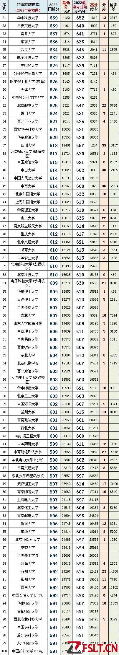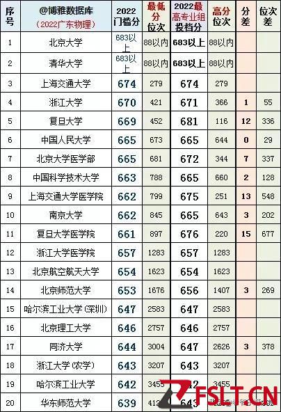 廣東省2022年物理類錄取分數(shù)最高的25所985大學分數(shù)線(位次)
