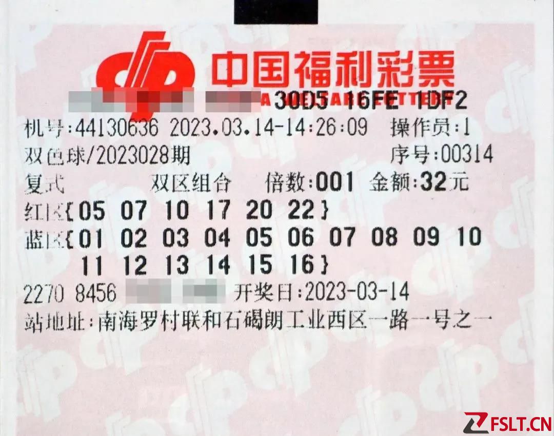 據(jù)媒體報道,在福彩雙色球游戲第23028期開獎中,當期全國共開出了4注一等獎,單注獎金為1000萬元,廣東省佛山市南海區(qū)羅村聯(lián)和石碣朗工業(yè)西區(qū)1路1號之1的福彩站中出了1注大獎,中獎彩票是一張32元投入的6+16藍區(qū)全包復式票,此票擊中了當期16注大獎(1注頭獎和15注二等獎),中得獎金累計1308萬余元。