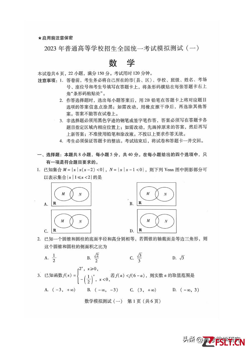 廣東省2023年第一次模擬考試數(shù)學(xué)試題及答案(2023.3.28)