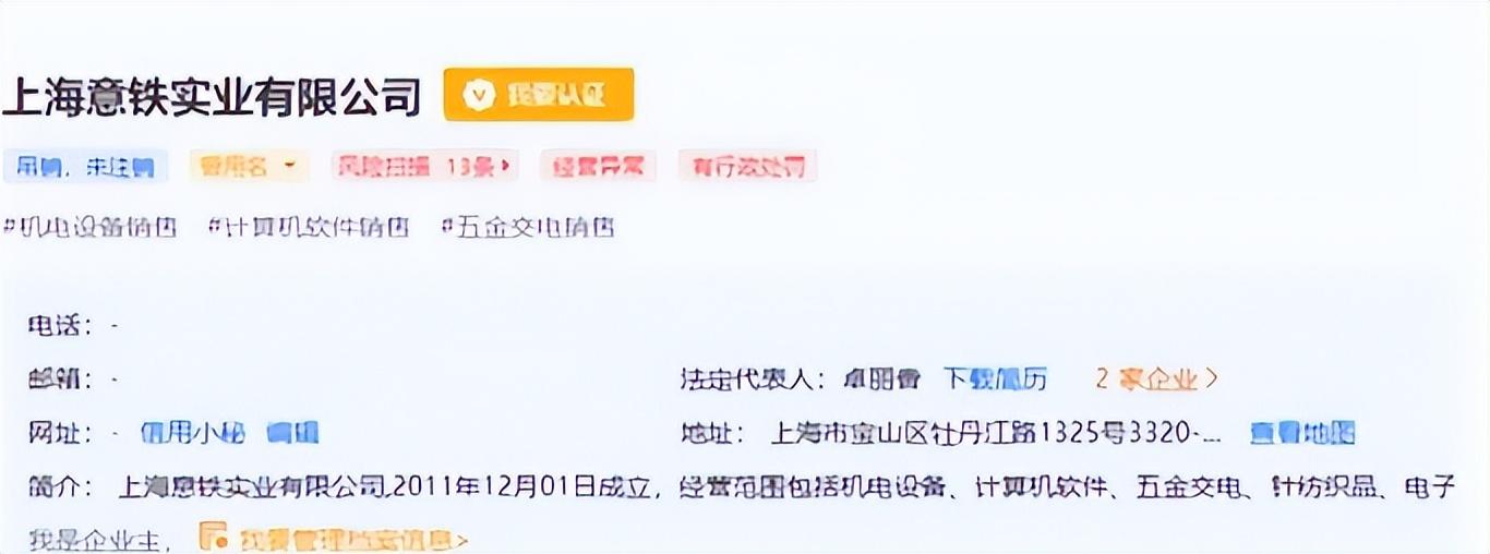 第三方名為上海意鐵實業(yè)有限公司,鄭先生收到的幾百條消費短信,都是由這家公司的不間斷劃扣產(chǎn)生。這家公司的經(jīng)營范圍為機電、計算機設(shè)備、五金交電、投資咨詢等。